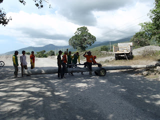 Some construction workers blocking the road from Maubara. I've never seen a concrete power line being erected by hand. The Timorese people are little dudes but they are pretty tough. These were pretty flamboyant construction workers though, nothing like what we get in Australia